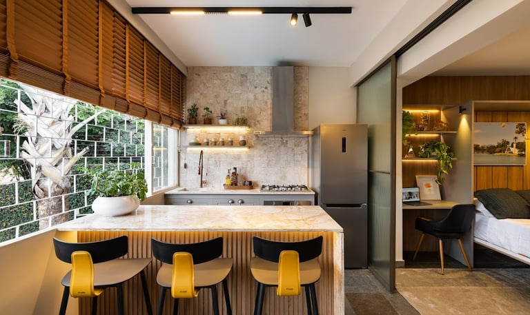 Loft: um refúgio urbano para uma jovem moderna. Inspirado em Belo Horizonte, reflete a fusão entre cidade e natureza, evidente na paleta de cores, materiais e design flexível. Um santuário aconchegante, preservando a história da casa e adaptado para o home office, espaço de convívio e praticidade. Sustentabilidade e estilo, harmonizados em menos espaço, mais vida.